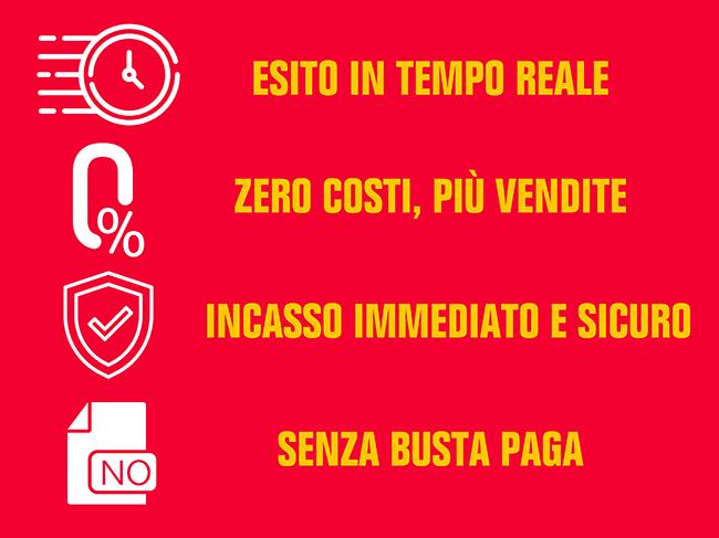 - zero costi e più vendite: il cliente non paga costi e l’esercente aumenta le vendite e lo scontrino medio;