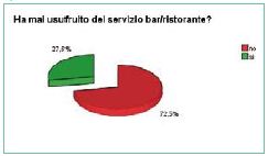 Il servizio di bar/ristorante risulta il più utilizzato con una percentuale del 27,5%; segue la piscina con il 22,4% ed il medico con il 18,8%. Un dato rilevante riguarda il centro estetico: il 16,4% dichiara di aver usufruito di tale servizio.